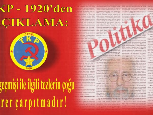 POLİTİKA Gazetesi’nde partimizin yakın geçmişini de ilgilendiren bazı tezler yayınlandı. Partimizin tarihi ile ilgili birçok çarpıtmaları içeren bu tezlerin hazırlanmasında parti üst yönetiminden birinin katıldığı anlaşılmaktadır. Bunun da Veysi Sarısözen olduğu tahmin edilebilmektedir. Bu nedenle de, bu tezlerdeki bazı çarpıtmalar üzerinde durmak ve onları düzeltmek gereği doğmuştur. Çünkü ileride TKP üzerine araştırma yapan bir kısım burjuva ve küçük burjuva Marxologların,